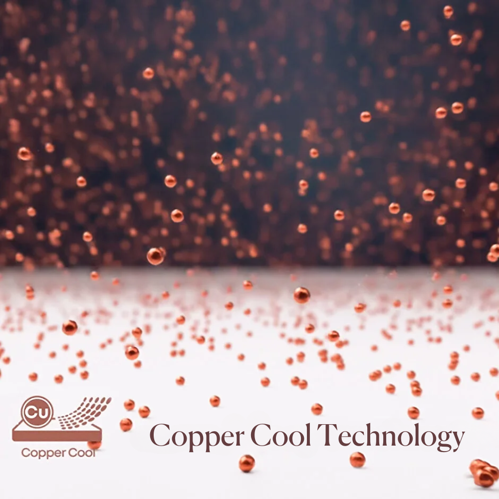 Technologie Copper Cool, vyvinutá na základě přírodních vlastností mědi, využívá měděné molekuly k rovnoměrnému rozložení tělesné teploty na povrchu matrace. Tím pomáhá snižovat pocení a zkracovat dobu usínání. Výsledkem je klidnější a pohodlnější spánek.