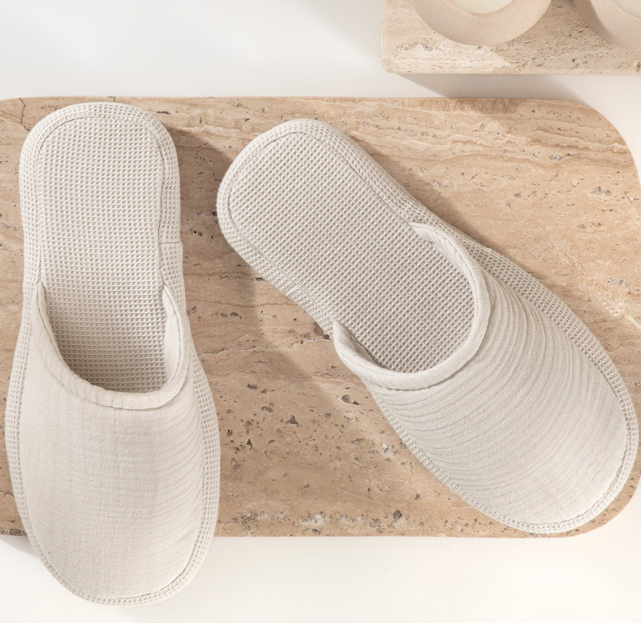 Zažijte maximální pohodlí a styl s pantoflemi Harold, které jsou k dispozici ve třech elegantních barvách: šedá, přírodní a bílá. Vyrobeny ze 100% bavlněné waflové tkaniny, tyto pantofle jsou navrženy tak, aby vám poskytly dlouhotrvající pohodlí a odolnost. Ať už odpočíváte doma nebo vystupujete ze sprchy, pantofle Harold dodají vašemu každodennímu životu nádech luxusu.