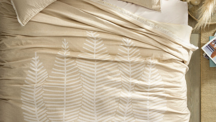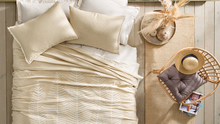 Set přehozu a povlaku na polštář Folium, na dvoulůžko, mušelínový, béžový, 230x240 cm